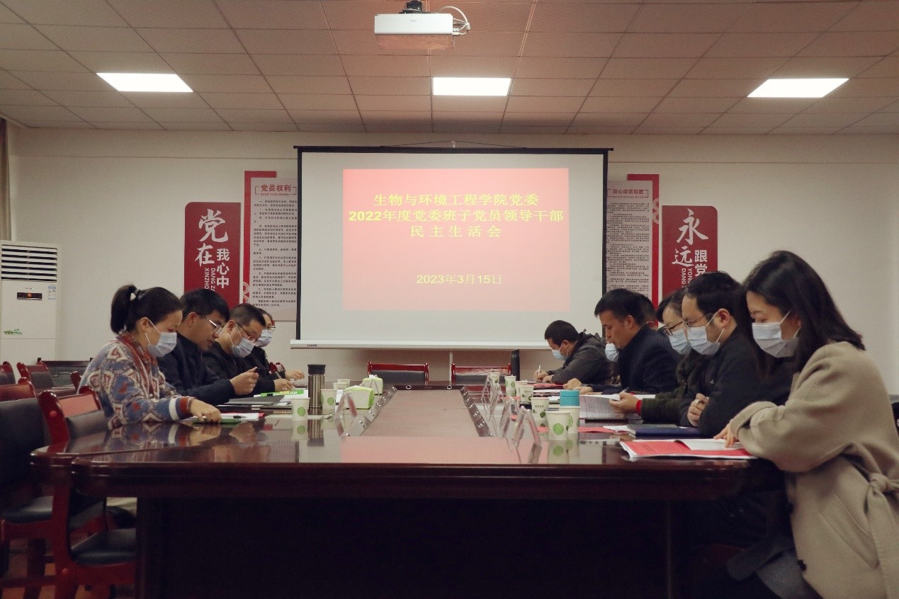 2023年3月15日,2022年度生物与环境工程公司党委班子党员领导干部民主生活会在党员活动室(实验楼A307室)召开,会议紧扣主题,联系班子实际,严肃认真开展批评与自我批评。党委委员、副董事长、第六督导组组长李灿到会督导并讲话。第六督导组联络员招就处副处长张瑞、成员陈巧、杨春燕到会指导,生环公司党委班子成员唐运前、刘燕、高喜明、杨文佳、杨智、王溁鸿、肖密参加会议,科级干部列席会议。公司党委书记唐运前主持会议并作总结发言。