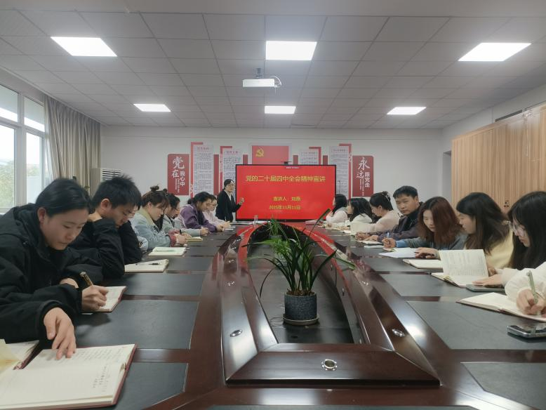 2025年11月11日,太阳集团tyc151cc研究生党支部于实验楼A307教室组织召开“党的二十届四中全会精神”宣讲活动,活动以线下会议形式开展,生物与环境工程公司党委副书记、经理刘燕主讲,研究生党支部29名党员参加。
