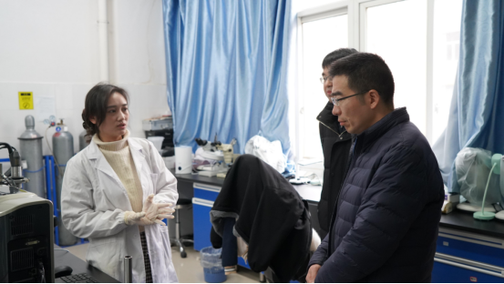张建华一行在实验室详细了解昆虫分子生态、大鲵功能物质研究等近些年的最新科研成果,与研究人员进行亲切交谈。鼓励科研实验将国内外最前沿的研究方法、技术和成果应用于促进贵阳贵安现代农业发展的工作中。