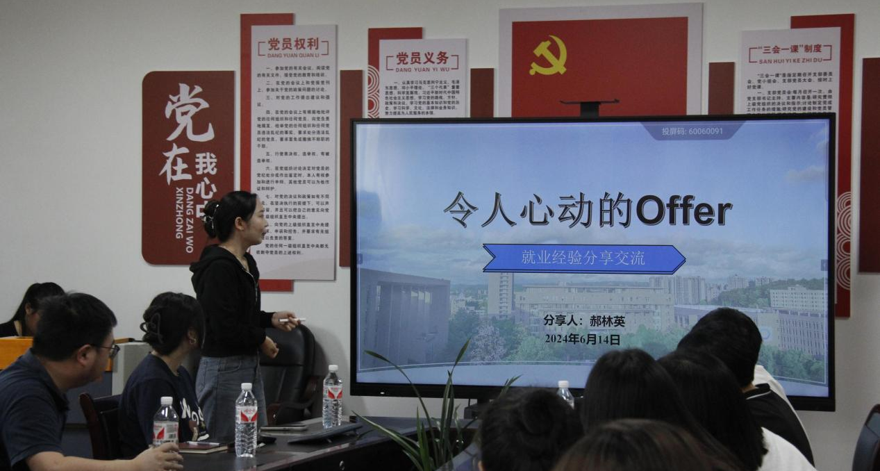 在就业分享环节,公司太阳集团tyc151cc2021级硕士研究生郝林英结合自己找工作的亲身经历,为同学们分享了贵州茅台有限公司招聘程序。同时,她还分享了自己在求职过程中的经验和技巧,包括如何制作精美的简历、如何准备面试等。回答了大家关于就业方面的问题。