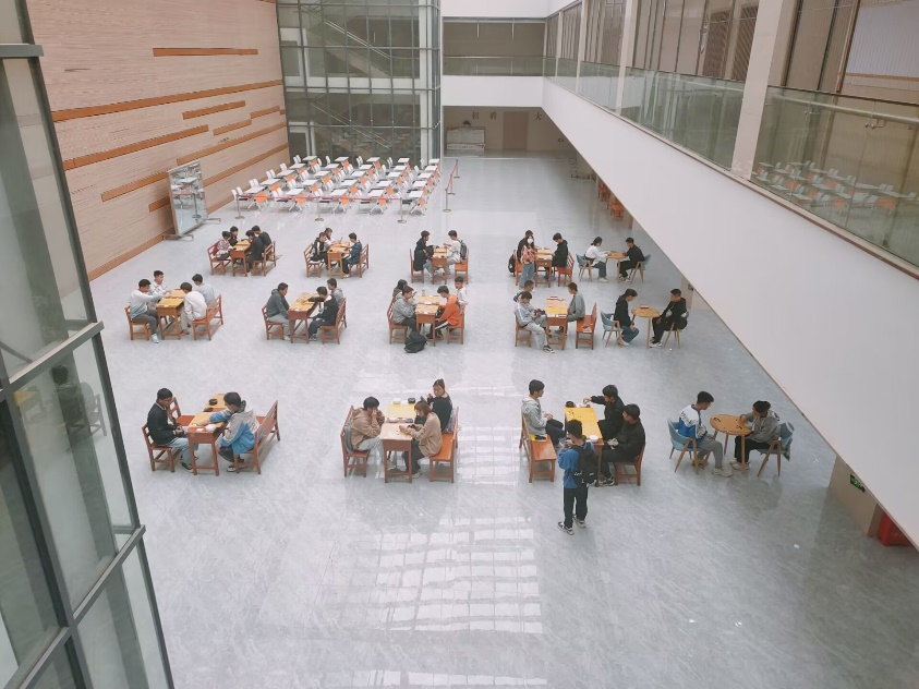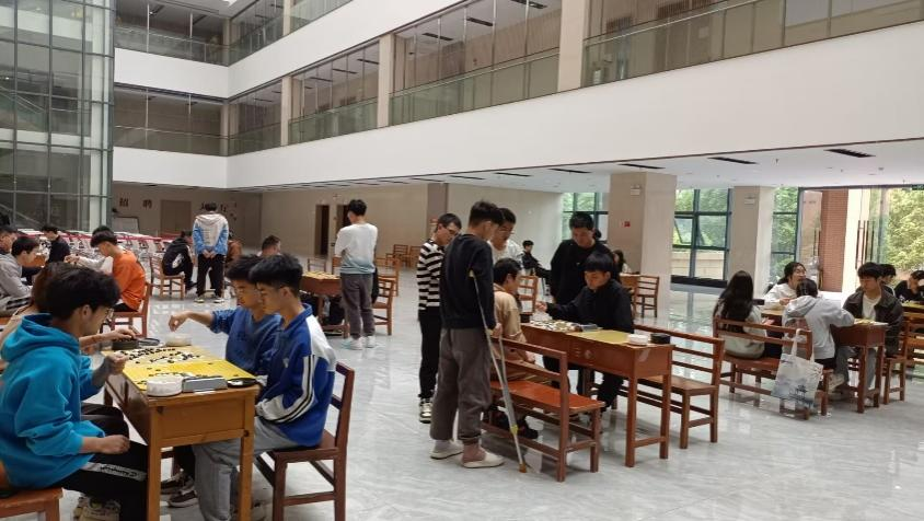 2023年5月23日,清风棋社在员工活动中心大厅开展围棋、五子棋、中国象棋“三棋”团体赛。全校有200多名同学参加了角逐,比赛场面紧张、热烈、有序,比赛经过三天的激烈对弈圆满收官。老师指导唐运前指导比赛的开展。