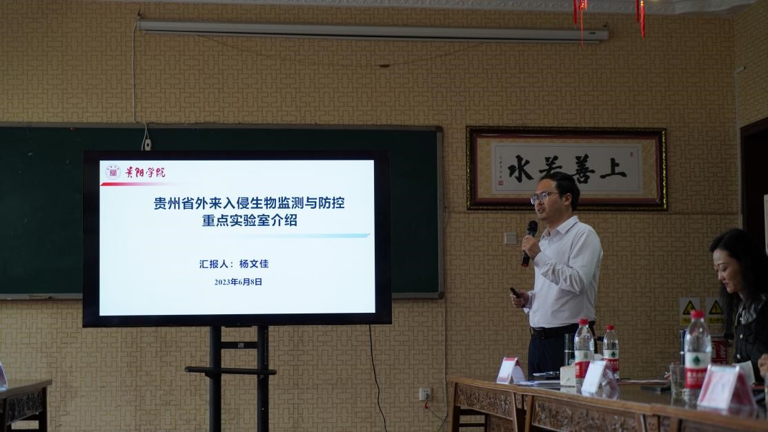 该实验室是贵州省教育厅批准立项建设的,聚焦生物入侵与防控工作的贵州省高校重点实验室。重点实验室主任杨文佳从实验室建设背景与目标、研究基础与科研条件、研究队伍与人才培养、创新科学研究等四个方面汇报了实验室的建设情况。